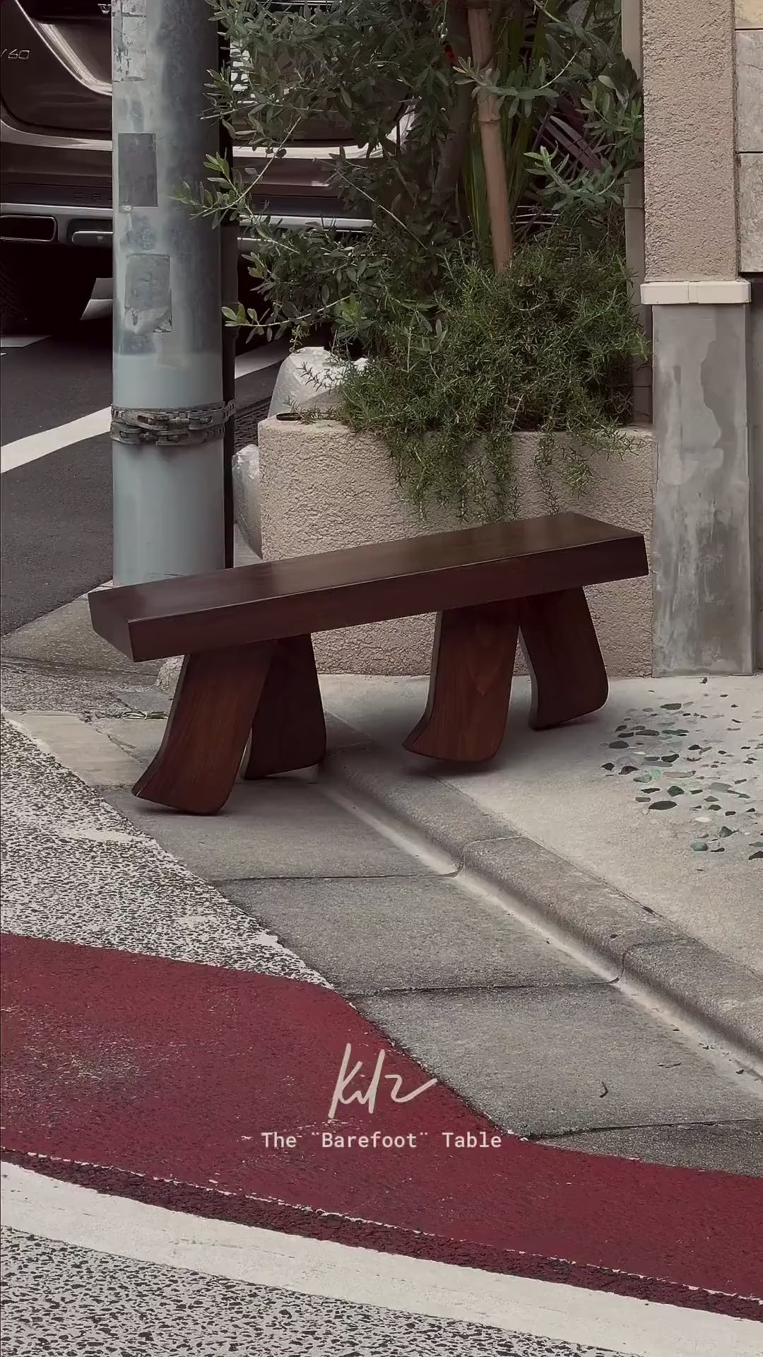 The ¨Barefoot¨ coffee table, a humorous touch, designed to simulate a large walking foot. After a life of constant movement and migration, Kilzi is aware that everyday life is constantly changing and that any change is also part of it. This piece of furniture, which moves quietly on four legs, conveys the message that even the most everyday scenes, such as eating at a table or chatting with friends on a bench, are constantly changing.